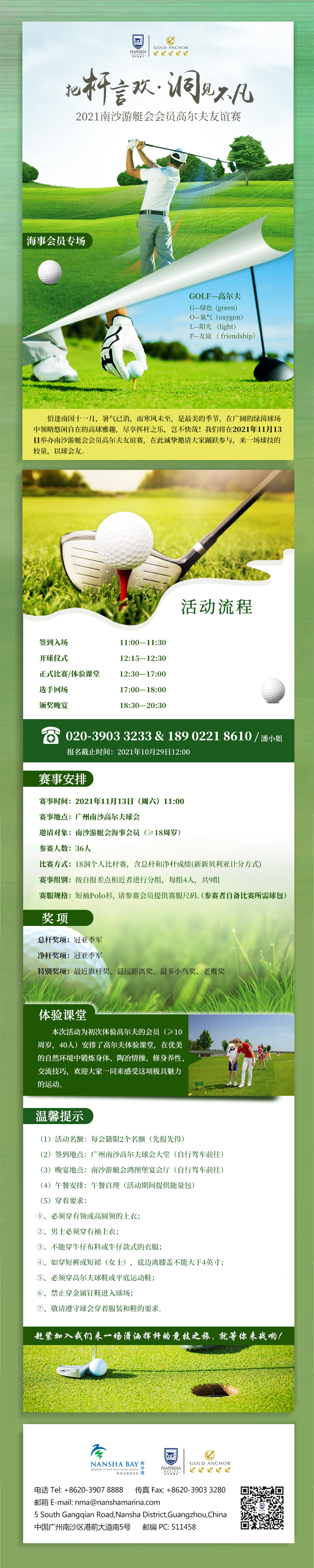 2021年11月13日,在廣州南沙高爾夫球會舉辦以“2021南沙游艇會會員高爾夫友誼賽”海事會員專場活動......